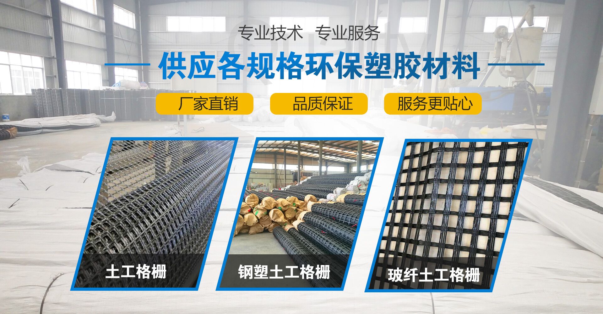 鋼塑土工格柵以高強鋼絲(或其他纖維),經特殊處理,與聚乙烯(PE),并添加其他助劑,通過擠出使之成為復合型高強抗拉條帶,且表面有粗糙壓紋,則為高強加筋土工帶。由此單帶,經縱、橫按一定間距編制或夾合排列,采用特殊強化粘接的熔焊技術焊接其交接點而成型,則為加筋土工格柵。
